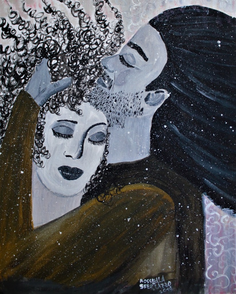 Da molti anni avevo questa immagine da dipingere, ma non riuscivo a farlo, forse perchè intrisa di molto dolore, In quanto ispirata alla triste vicenda avvenuta nel naufragio del 03/10/2013, ovvero la nascita di un bambino mentre la madre moriva. “Lei annegava, prigioniera dentro la prua del barcone che s’inabissava sul fondo del mare di Lampedusa. Lui anche, appena nato e ancora legato alla sua mamma dal cordone ombelicale. La ragazza africana aveva poco meno di vent’anni e portava in grembo quell’esserino di appena sette mesi”. Ho voluto con il mio dipinto ridare una vita immaginaria e spirituale alla madre e al figlio , riunendoli in una danza , una danza della vita in fondo al mare.